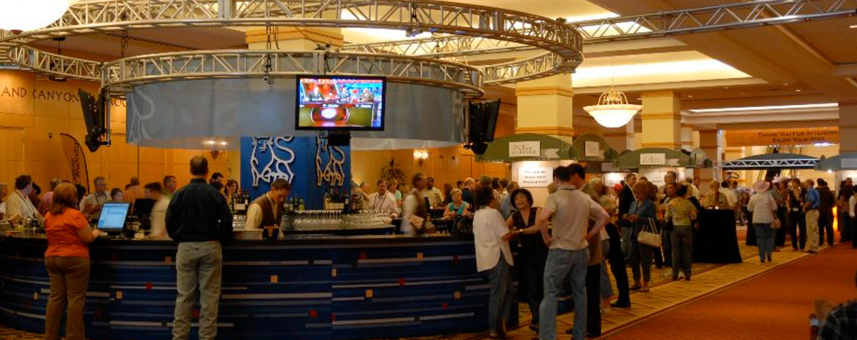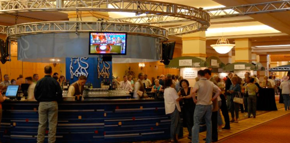Designed a Hub and Spoke style structure that created interconnecting presentation areas along with social areas. The social area included computer terminal and wi-fi access so client could get on e-mail and catch-up on work, and also provided large flat screen TV’s that showed MSNBC, CNN and Fox during the day. At night, the social areas turned into bars and the TV’s showed ESPN, Fox Sports, TNT and created a gathering place each evening.